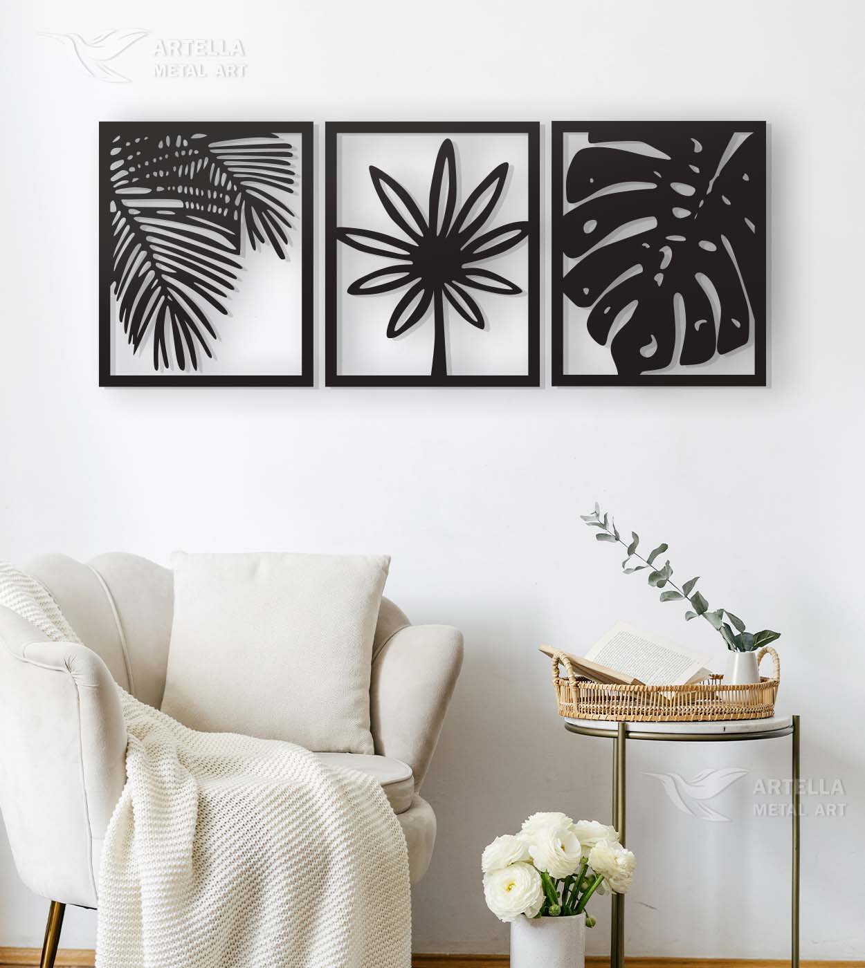 Pričvršćivanje na zid je veoma jednostavno. Sa svakim dizajnom šaljemo vam četiri crna vijka, četiri distancera i četiri tiple za zid. Većina naših dizajna već ima napravljene rupe unaprijed, tako da ćete znati gdje postaviti vijke. Prvo stavljate tiple u zid, zatim postavljate vijak na dizajn, i s zadnje strane stavljate distancere, pričvršćujete na zid… to je to. Nemamo uslugu montaže, tako da sami postavljate na zid.
