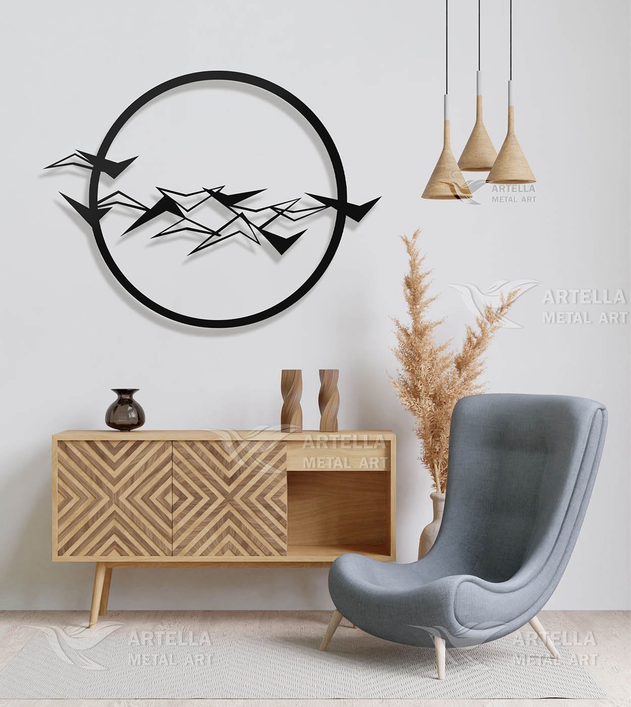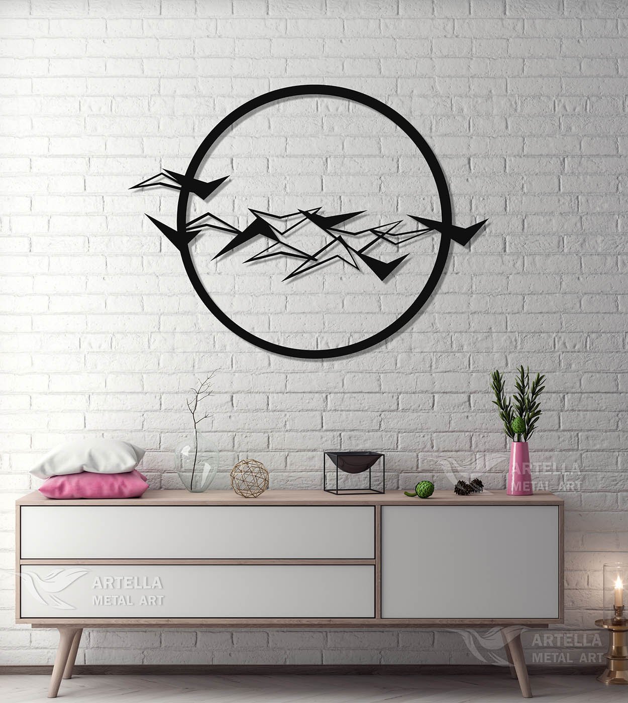 Pričvršćivanje na zid je veoma jednostavno. Sa svakim dizajnom šaljemo vam četiri crna vijka, četiri distancera i četiri tiple za zid. Većina naših dizajna već ima napravljene rupe unaprijed, tako da ćete znati gdje postaviti vijke. Prvo stavljate tiple u zid, zatim postavljate vijak na dizajn, i s zadnje strane stavljate distancere, pričvršćujete na zid… to je to. Nemamo uslugu montaže, tako da sami postavljate na zid.