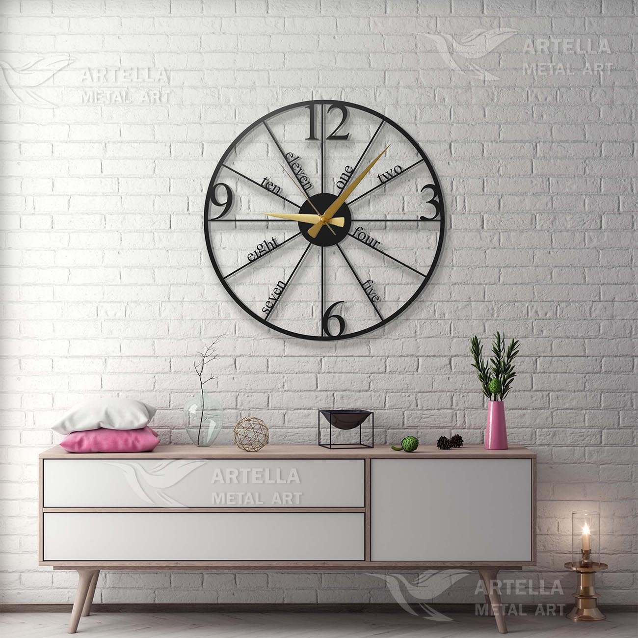 Pričvršćivanje na zid je veoma jednostavno. Sa svakim dizajnom šaljemo vam četiri crna vijka, četiri distancera i četiri tiple za zid. Većina naših dizajna već ima napravljene rupe unaprijed, tako da ćete znati gdje postaviti vijke. Prvo stavljate tiple u zid, zatim postavljate vijak na dizajn, i s zadnje strane stavljate distancere, pričvršćujete na zid… to je to. Nemamo uslugu montaže, tako da sami postavljate na zid.