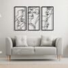 Pričvršćivanje na zid je veoma jednostavno. Sa svakim dizajnom šaljemo vam četiri crna vijka, četiri distancera i četiri tiple za zid. Većina naših dizajna već ima napravljene rupe unaprijed, tako da ćete znati gdje postaviti vijke. Prvo stavljate tiple u zid, zatim postavljate vijak na dizajn, i s zadnje strane stavljate distancere, pričvršćujete na zid… to je to. Nemamo uslugu montaže, tako da sami postavljate na zid.