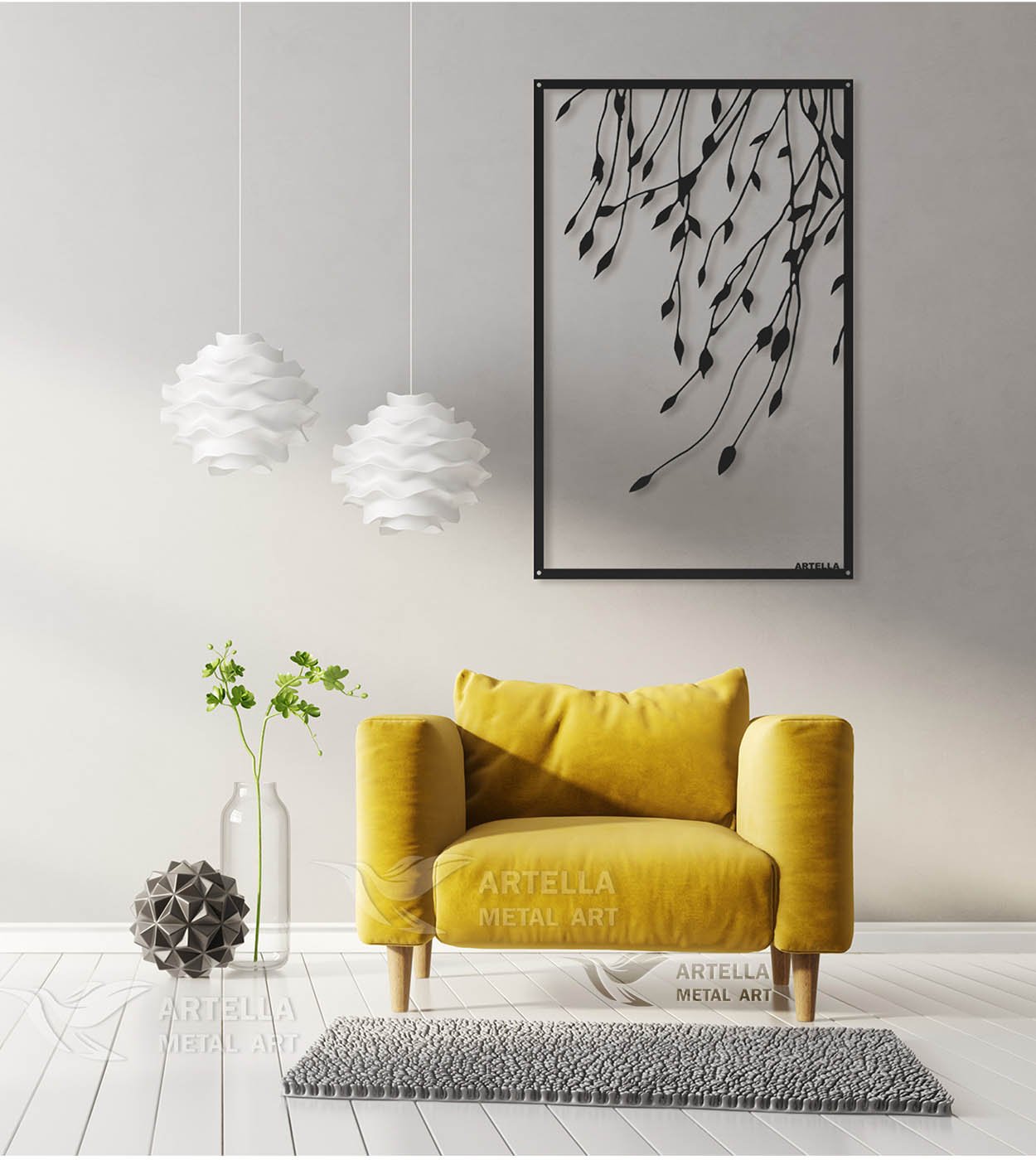 Pričvršćivanje na zid je veoma jednostavno. Sa svakim dizajnom šaljemo vam četiri crna vijka, četiri distancera i četiri tiple za zid (Ovo vazi samo za Slike). Većina naših dizajna već ima napravljene rupe unaprijed, tako da ćete znati gdje postaviti vijke. Prvo stavljate tiple u zid, zatim postavljate vijak na dizajn, i s zadnje strane stavljate distancere, pričvršćujete na zid… to je to. Nemamo uslugu montaže, tako da sami postavljate na zid.