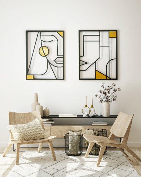 Pričvršćivanje na zid je veoma jednostavno. Sa svakim dizajnom šaljemo vam četiri crna vijka, četiri distancera i četiri tiple za zid. Većina naših dizajna već ima napravljene rupe unaprijed, tako da ćete znati gdje postaviti vijke. Prvo stavljate tiple u zid, zatim postavljate vijak na dizajn, i s zadnje strane stavljate distancere, pričvršćujete na zid… to je to. Nemamo uslugu montaže, tako da sami postavljate na zid.